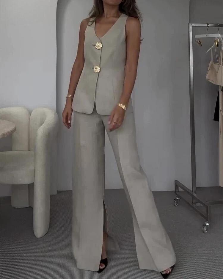 Odkryj Elsie Dwuczęściowy Zestaw od Olsen & Olsen: Połączenie ponadczasowej elegancji i nowoczesnego stylu. Ten zestaw, składający się z stylowej kamizelki i pasujących spodni, emanuje wyrafinowaniem na każdą okazję.