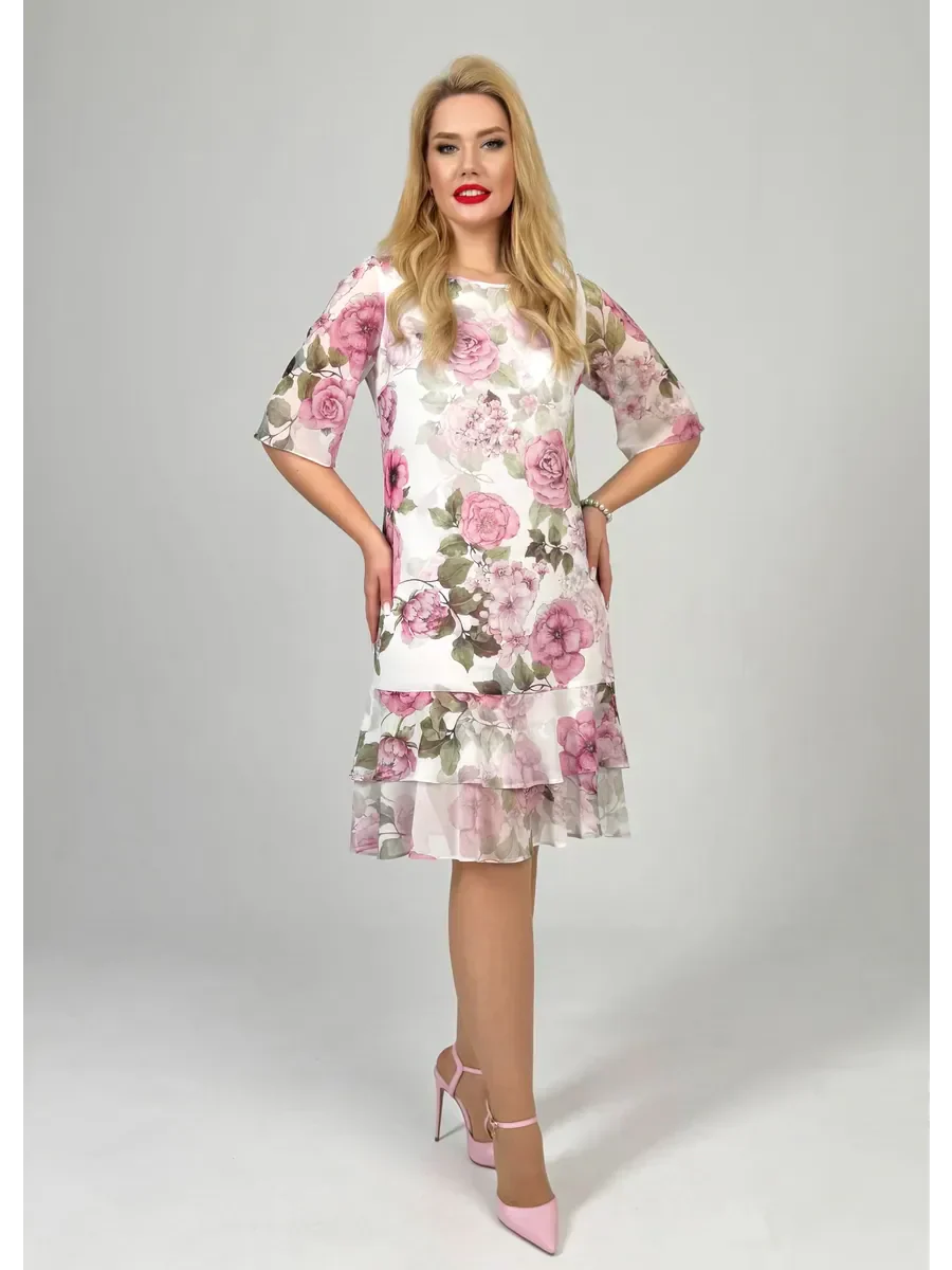 Samanta | Letnia luźna sukienka z okrągłym dekoltem i krótkim rękawem