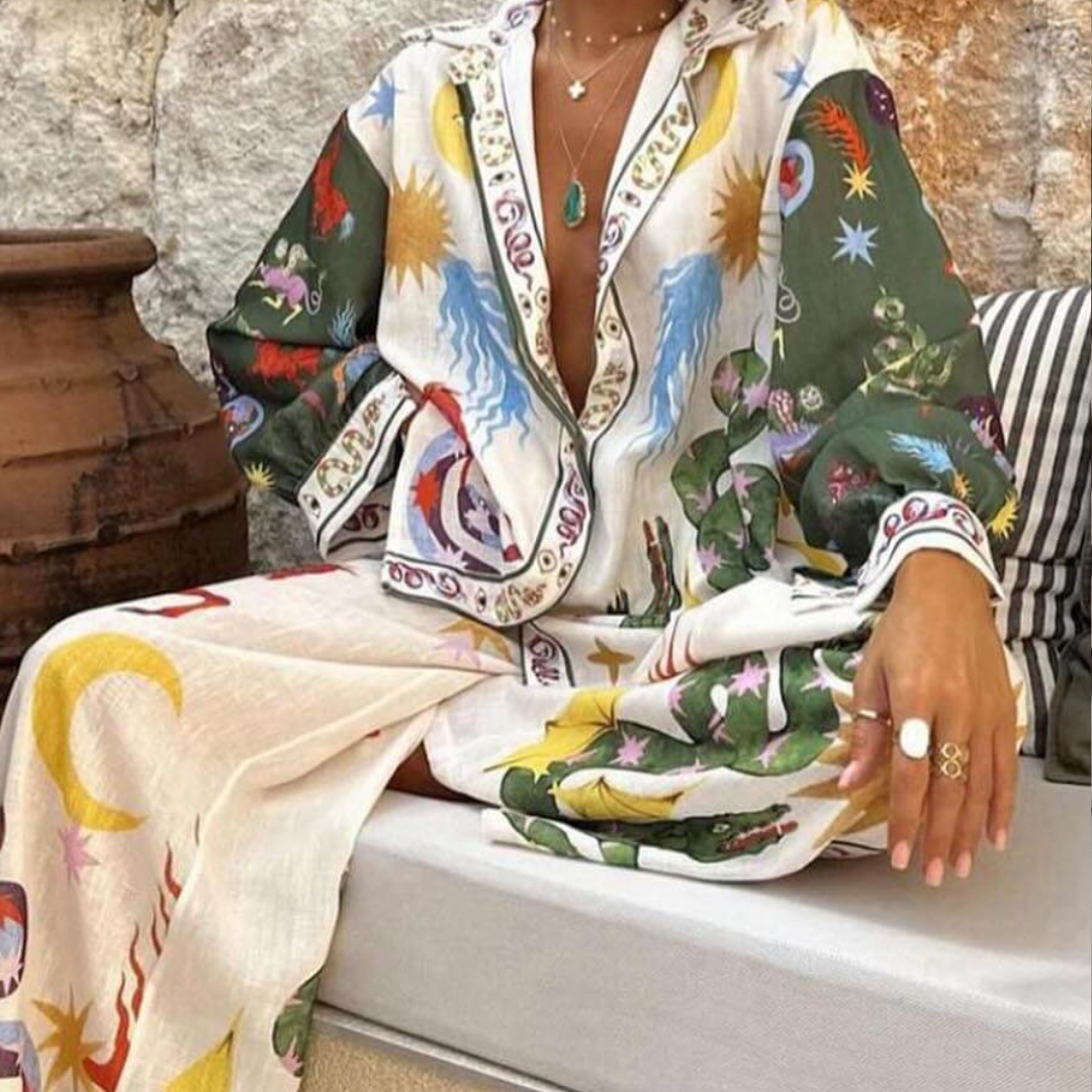 Olsen & Olsen przedstawia dwuczęściowy zestaw Victoria, który uchwyca ponadczasową elegancję z nowoczesnym akcentem. Składający się z luźnej koszuli i dopasowanych spodni, ten zestaw emanuje wyrafinowaniem przy każdej okazji. Dzięki swojemu przyciągającemu wzrok designowi, Victoria jest idealnym dodatkiem do Twojej garderoby.